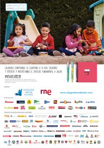 Entre todos tratamos de recordar cada campaña a toda la sociedad que jugar es un derecho y que colaborando con la compra de nuestros productos podemos garantizar el juego en muchos rincones donde los niños crecen sin la oportunidad de jugar. Súmate. Juntos podemos cumplir el sueño de muchos más niños.