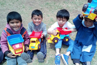 Entregamos juguetes unipersonales, como pueden ser muñecas, camiones o balones nuevos que se dan directamente al niño. Por otro lado dotamos de diferentes juegos a ludotecas instaladas en colegios, hospitales y otros centros públicos y comunitarios para fomentar que el niño pueda crecer y aprender con un juguete y, sobre todo, compartirlo con otros niños. En este caso la tipología es más amplia y se acompañan con una guía en tres idiomas donde se asesora para un correcto uso y mantenimiento de cada ludoteca. Algunos ejemplos de estos juguetes son marionetas, disfraces, cuentos, instrumentos musicales, triciclos, y también juegos de exterior como casitas, toboganes y balancines, entre otros.