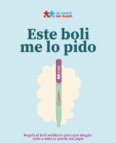 Me lo pido” es el lema del spot de este año, una frase que cada Navidad repiten niños y niñas, y que Blanca y Sofía transforman en un mensaje de solidaridad: por cada boli que se regale, un niño o niña en situación de vulnerabilidad podrá disfrutar de un juguete. Y no solo juguetes individuales, la campaña también colabora en la dotación de ludotecas en centros de acogida, hospitales, campos de refugiados y otros proyectos. El objetivo es que cualquier niño o niña, sea cual sea su situación, pueda crecer jugando.